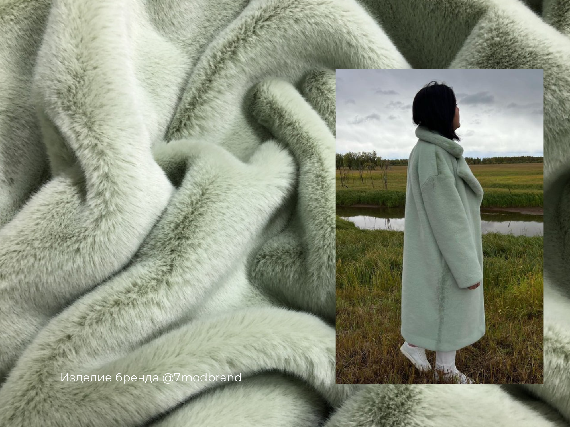 Экомех MIROFOX Canada — «Канадская норка», цвет Фисташковый. Нежный пастельный тон с лёгким кремово-лаймовым подтоном. Ворс лежит ровно, даёт деликатное сияние, подшёрсток добавляет объёма и «натурального» ощущения при касании. Материал держит форму, не утяжеляет посадку и стабильно ведёт себя в носке.